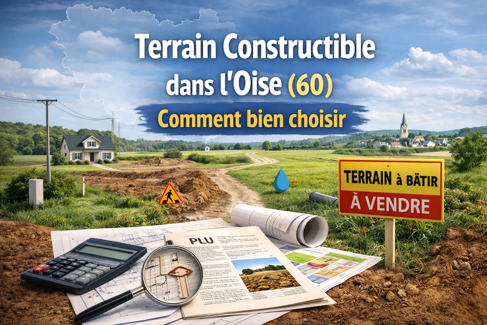 Comment choisir un terrain constructible dans l’Oise (60) ? PLU, viabilisation, étude de sol, accès, assainissement, budget réel. Conseils d’expert pour sécuriser votre projet de construction.
